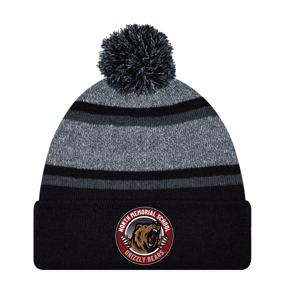 9M069M Acrylic Roll Pom Pom Toque – Black/Charcoal