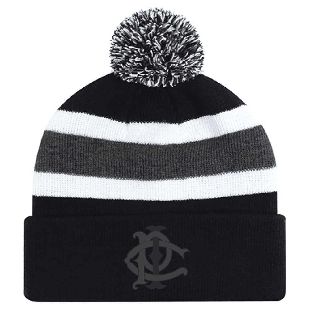 9S243M Acrylic Roll Pom Pom Toque – Black/Charcoal/White