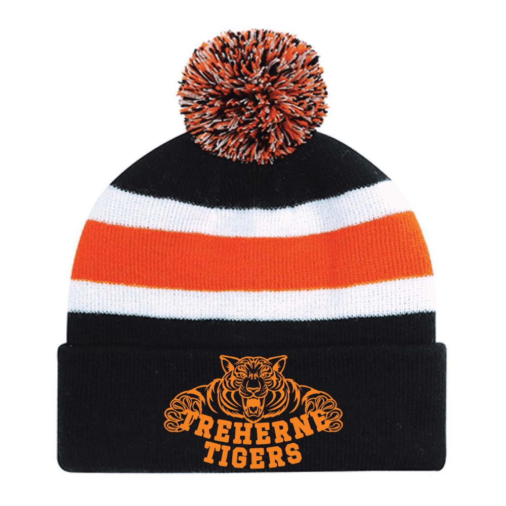 9S243M Acrylic Roll Pom Pom Toque – Black/Orange/White